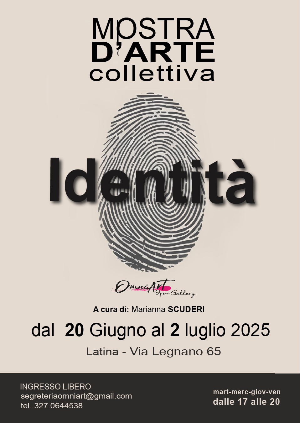 La Galleria d’Arte OmniArt Open Gallery è lieta di presentare "Identità", una mostra collettiva che riunisce 15 artisti contemporanei in un progetto espositivo corale dedicato al tema dell’identità. La mostra è stata inaugurata venerdì 20 giugno 2025 alle ore 18:30, con la presentazione del critico d'arte Bruno Creo, Un’occasione per il pubblico di incontrare gli artisti e immergersi in un percorso visivo che attraversa memoria, introspezione, radici e trasformazione personale.
