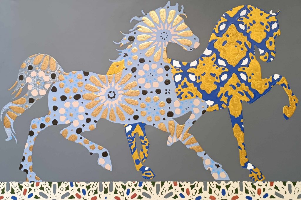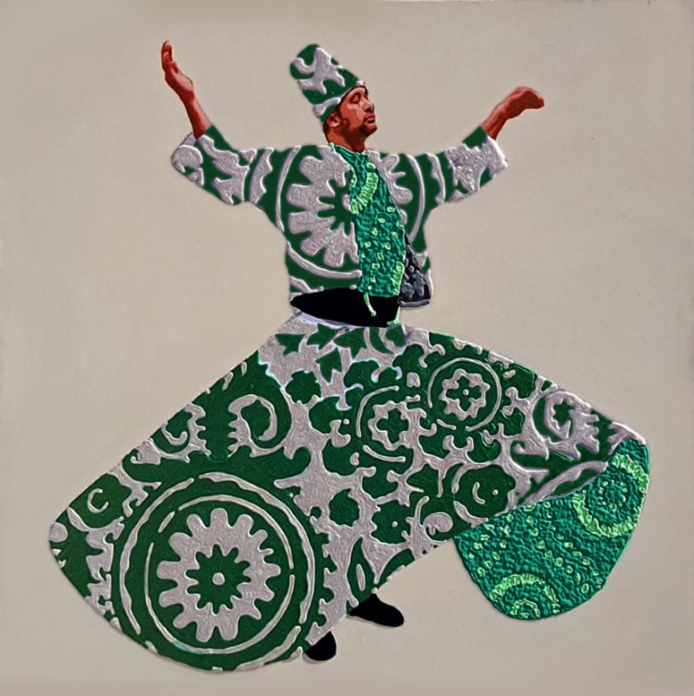Luigi Ballarin, risiede tra Venezia ed Istanbul, con un lungo intermezzo anche a Roma. Cresce impregnato di cultura veneziana fin dai suoi primi viaggi. Venezia è una città che di per sé ha avuto molti contatti con l’Oriente e la nascita in questo territorio può spiegare l’abitudine a cibarsi mentalmente di decorazioni e modelli di ispirazione orientale. La sua arte è infatti unione tra Oriente ed Occidente e sintetizza in immagini iconiche le suggestioni delle arti minori che percorrevano i cammini degli scambi commerciali e dei viandanti, e fondevano le diverse tradizioni: maioliche, smalti, ori e tessuti. L’Islam e il Medio Oriente sono il fil- rouge di moltissima parte della sua arte. Perché, Ballarin non si cala nella politica e nell’ideologia, ma cerca la sintonia, che ritrova nella spiritualità e nella preghiera delle masse. È attraverso la sua libera interpretazione che l’idea di Oriente prende una forma elegante e garbata. Ballarin è di fama internazionale perché ha esposto in un centinaio di luoghi nel mondo.