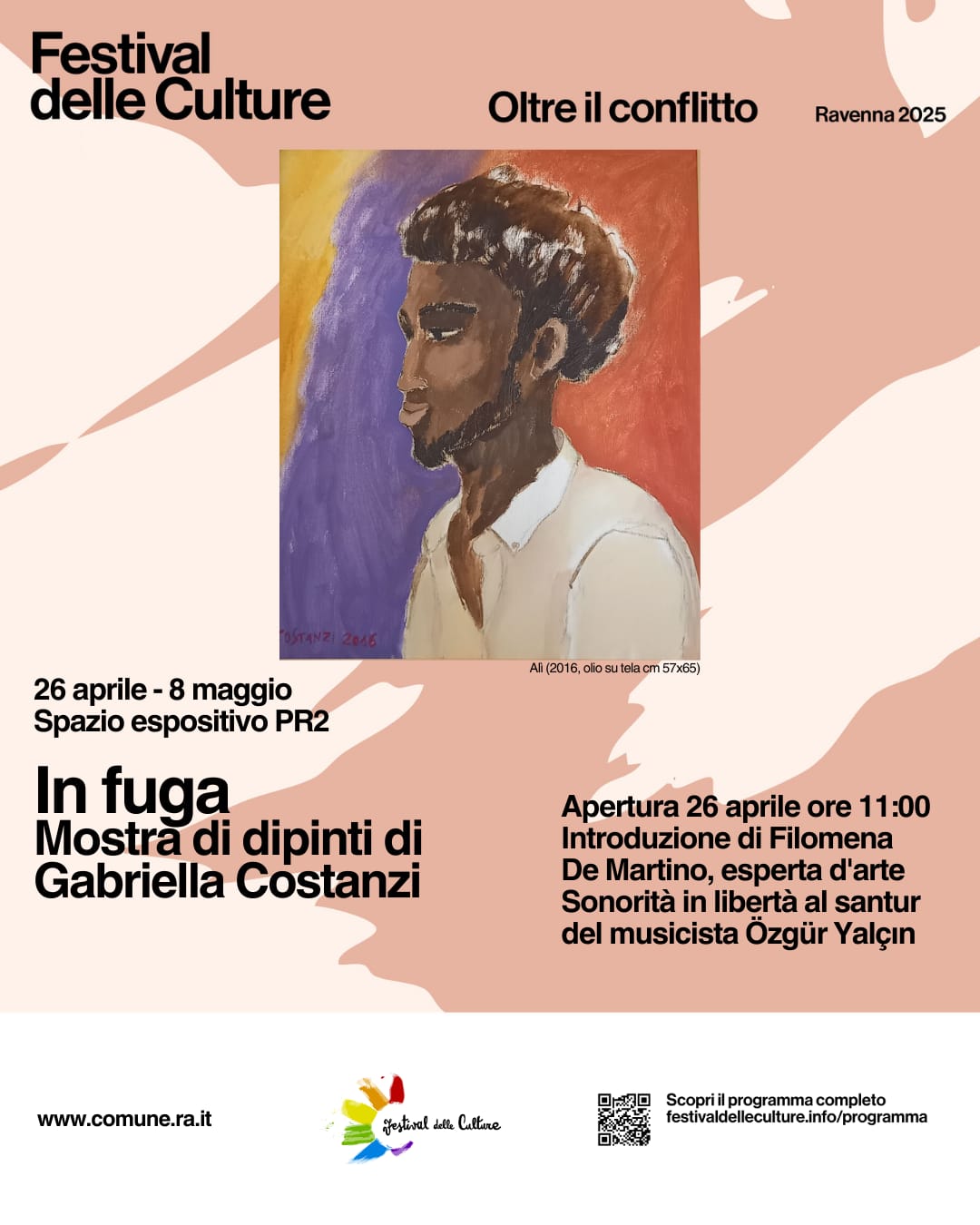 L'esposizione dal titolo “In Fuga. Quando conoscerò la tua anima, dipingerò i tuoi occhi”, si inserisce all'interno del Festival delle Culture – Oltre il conflitto edizione