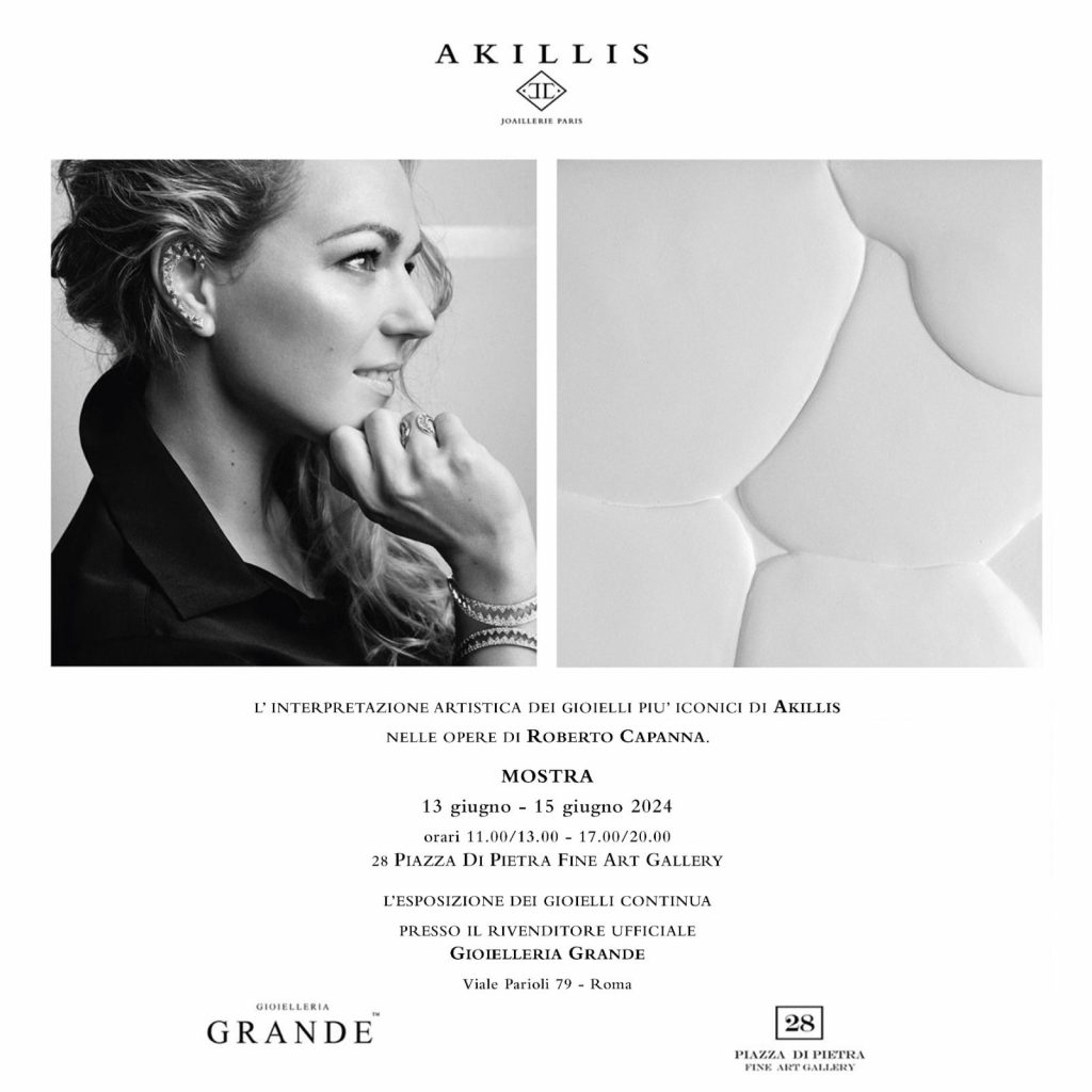 Un evento-mostra in cui saranno esposte 20 opere inedite di Roberto Capanna, artista e produttore musicale (Cigarette Music) insieme alle collezioni più iconiche di Akillis Paris, marchio di alta gioielleria francese che fa il suo debutto in Italia.