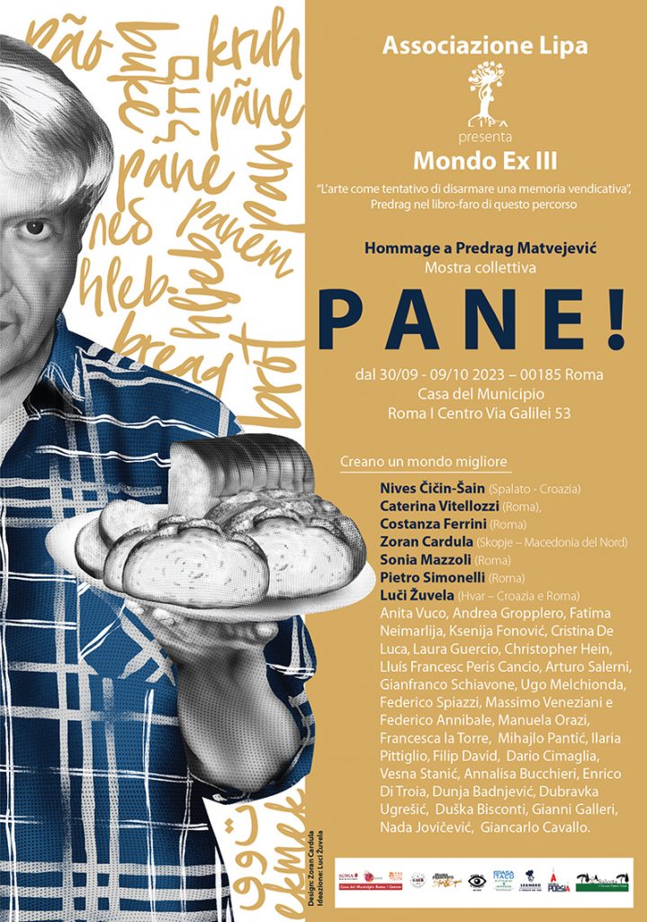 La terza tappa della rassegna Mondo Ex in omaggio a Predrag Matvejević, porta il titolo Pane! liberamente ispirato all’ultimo lascito letterario di Matvejević intitolato “Pane Nostro” (casa editrice Garzanti, 2015). La mostra si terrà negli spazi della Casa del Municipio Roma I Centro in via Galilei 53 (metro Manzoni).