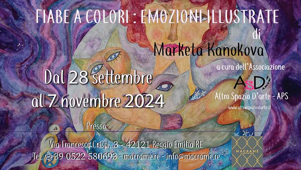 «Disegnare con il cuore guarisce l'anima e porta alla gioia»... L’artista Marketa Kanokova torna ad esporre a Reggio Emilia, una selezione di 16 opere, disegni originali realizzati tra il 2022 e il 2024 con la tecnica del pastello acquerellato.