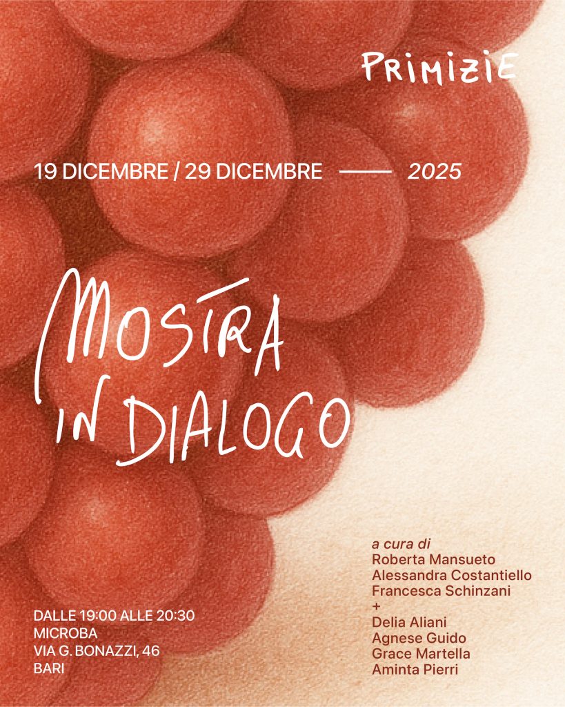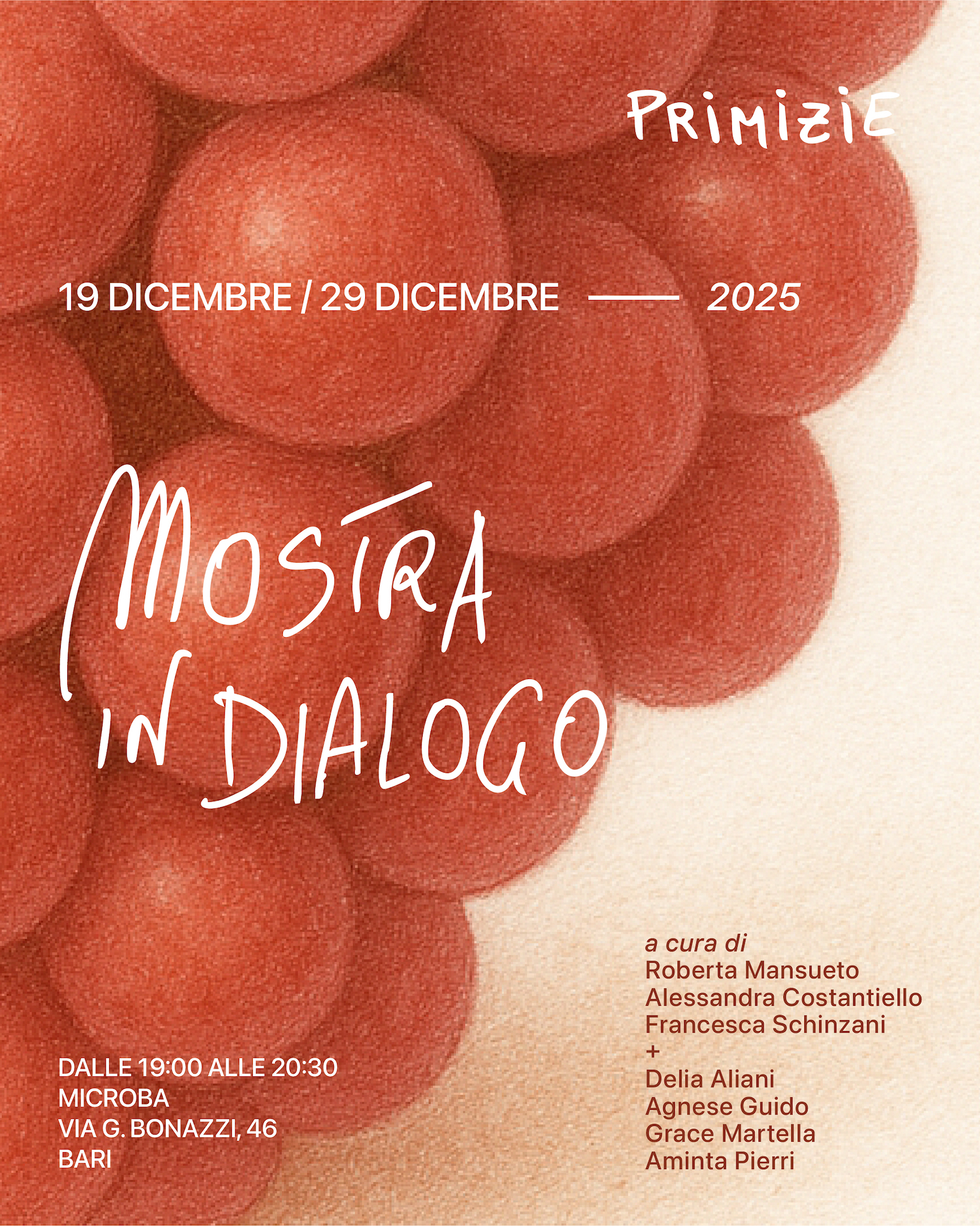 La mostra sarà visibile dal 19 al 30 dicembre dalle 17:00-20:00 o su appuntamento negli spazi di MICROBA a Bari.