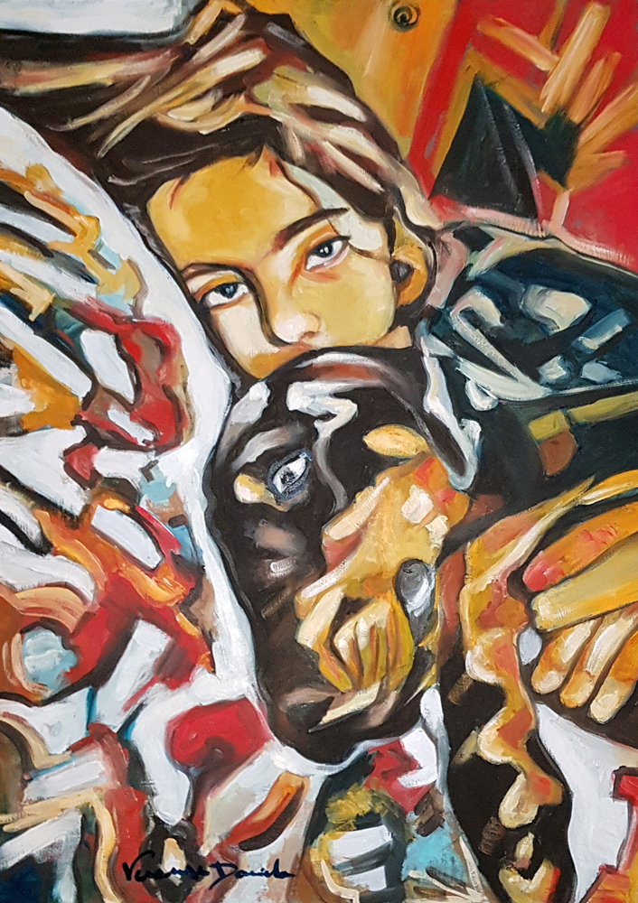 L'artista Daniela Veronese è stata inserita all'interno della piattaforma web delle mostre curate dalla Dott.ssa Elena Gollini con un circuito di 20 opere di intenso impatto espressivo, che meglio rappresentano e testimoniano il suo talento innato e le consolidate e radicate capacità di padronanza tecnica e strumentale, nonché la spiccata sensibilità che guida e sostiene la vena ispiratrice. La mostra online s'intitola “Arte e vita” proprio per enfatizzare la componente esistenziale ed esistenzialista, che ha un ruolo principale portante come radice di fondamento del suo fare pittorico. La Dott.ssa Gollini ha dichiarato al riguardo: “Dinanzi alle creazioni di Daniela eseguite con magistrale progettazione ideativa a monte, si comprende subito come il percorso di ricerca da lei seguito con fervida passione sia dettato da un coinvolgimento emotivo ed emozionale potentissimo, che influisce profondamente sul suo modus pensandi e operandi e si trasmette di rimando anche nel modus pingendi. Daniela dipinge nel moto dell'anima e questa vibrante e pulsante carica energetica la supporta e la sorregge nel trasferire e nell'imprimere alle raffigurazioni una grande vitalità, una forza comunicativa che si sprigiona a tutto campo e fuoriesce dalla superficie del supporto pittorico, espandendosi e dilatandosi. L'amore autentico verso il mondo degli animale e in particolare dei cani e dei gatti si percepisce in ogni opera a loro dedicata e diventa un notevole plus valore aggiunto sostanziale molto rilevante nell'insieme del costrutto. Anche i quadri dedicati al figurativo in stile ritratto prospettano sempre un particolare afflato di trasporto e di coinvolgimento, che la porta a realizzare una proiezione molto piacevole nell'impatto estetico, ma altrettanto intensa nel risvolto psichico e psicologico, riuscendo perfettamente a cogliere e a carpire anche i tratti e gli aspetti distintivi caratterizzanti del mondo interiore e introspettivo dei protagonisti immortalati. I colori sempre radiosi e luminosi hanno un'accattivante briosità e catturano e conquistano lo sguardo del fruitore, infondendo dinamismo e movimento alla narrazione visiva. Daniela non cerca di stupire e di sorprendere usando espedienti ridondanti e macchinosi e tanto meno elaborando prospettive figurali borderline, ma si affida a una soave, dolce e delicata poesia espressiva, a un elegante, raffinato e garbato virtuosismo scenico, che rende le opere pacatamente e sobriamente affascinanti. Nel complesso e troppo spesso esasperato panorama pittorico contemporaneo, senza dubbio Daniela emerge e si distingue per lo stile di classe, per il pensiero elevato, per l'espressione fluida e suadente come un'incantevole melodia sonora”.