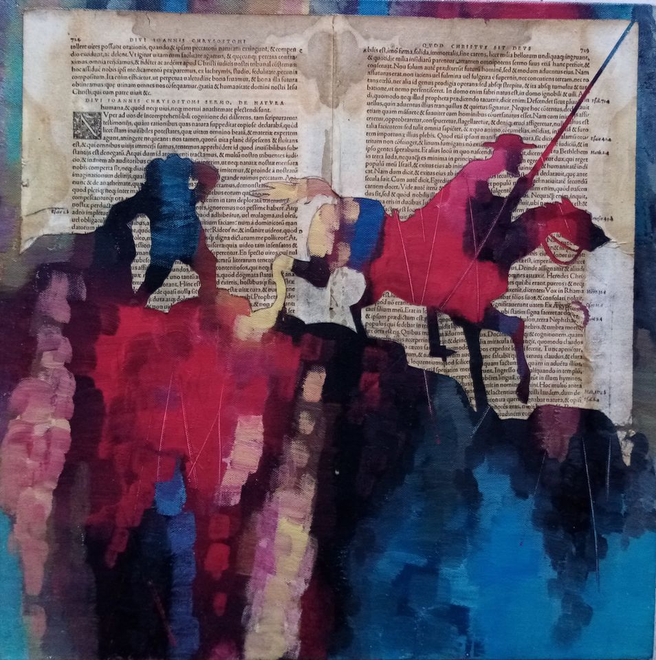 Al primo e al secondo piano un’ampia selezione di quadri dell’artista di origini camune Virgilio Patarini appartenenti alla serie “Scripta Volant”: opere realizzate ritagliando silhouettes di personaggi letterari (Dante e Virgilio, Don Chisciotte e Sancio Panza) o di animali (aironi e farfalle) da pagine di libri del Cinquecento e del Seicento e applicandole poi su superfici materiche e variopinte (cemento e pigmenti su tela), opere che iocano sul contrasto dialettico tra la leggerezza delle sagome ritagliate e la matericità dei fondi, tra impatto emozionale dei colori e citazioni letterarie. Mostra visitabile fino al 3 novembre, tutti i giorni dalle h9 alle h17. Ingresso libero.
