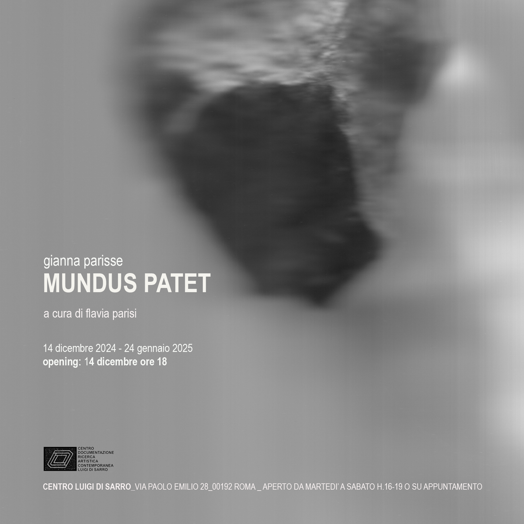 La mostra presenta l’opera di Gianna Parisse Mundus Patet, presentata per la prima volta in Italia, un’installazione composta da diversi elementi fotografici, audio e video.L’installazione abita le tre sale del Centro Luigi Di Sarro, rispettivamente con una composizione di 171 scatti di pietre raccolte sul luogo oggetto della ricerca dell’artista; un tavolo, dove sono disposti due raccoglitori contenenti 340 scatti di oggetti in vetro, e di rami di alberi raccolti nel meleto della casa; una proiezione video (4’ 43”), la cui traccia sonora si diffonde nei tre ambienti espositivi.