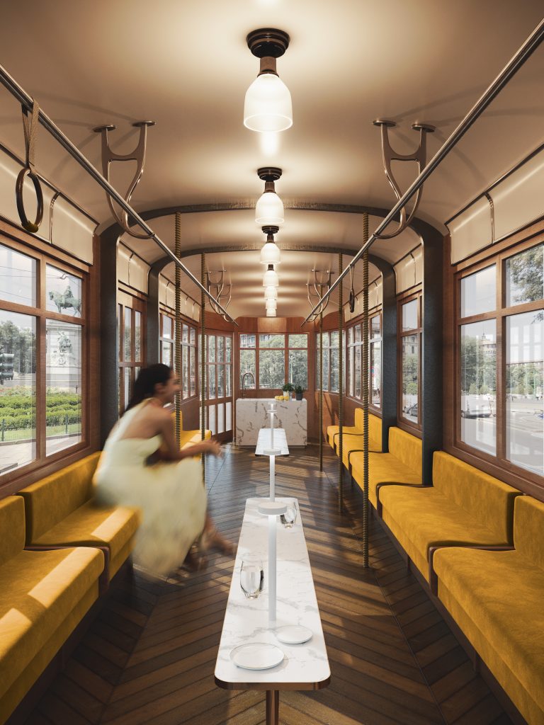 Lo storico tram K35 del 1920, grazie ad un makeover interno ed esterno, si trasforma in un elegante spazio arredato secondo criteri ecosostenibili, dentro al quale un’attenta selezione di brand internazionali proporranno attività ed eventi incentrati sul design e artigianalità sostenibile.