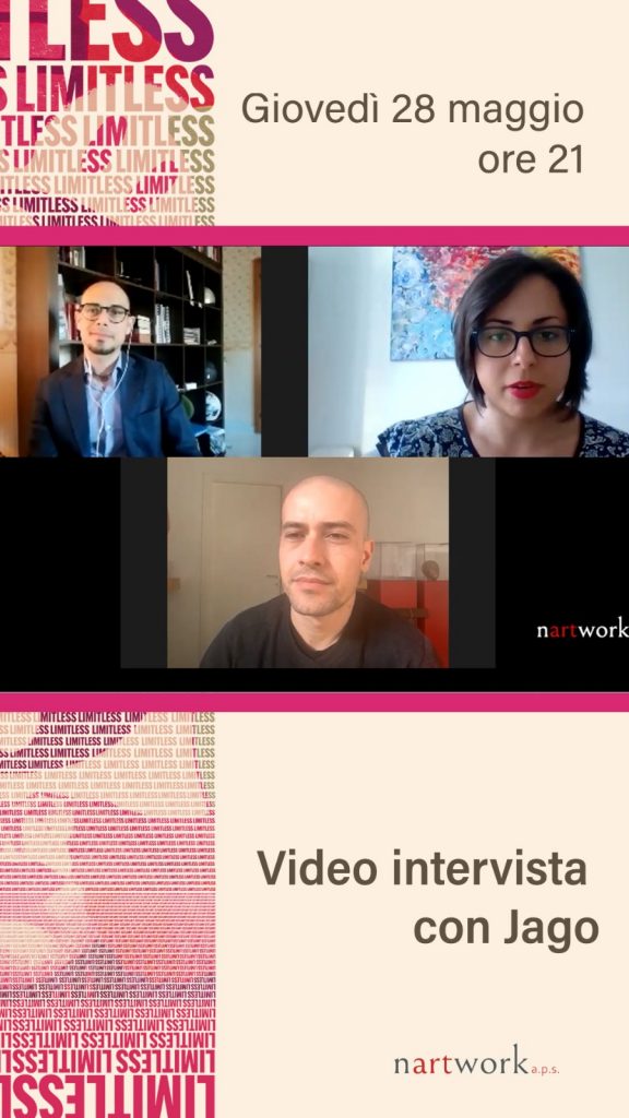 On Thursday 28 May, at 9 pm, on the facebook instagram and youtube channel of the Nartwork Association, the interview with Jago on how art is changing during the emergency.