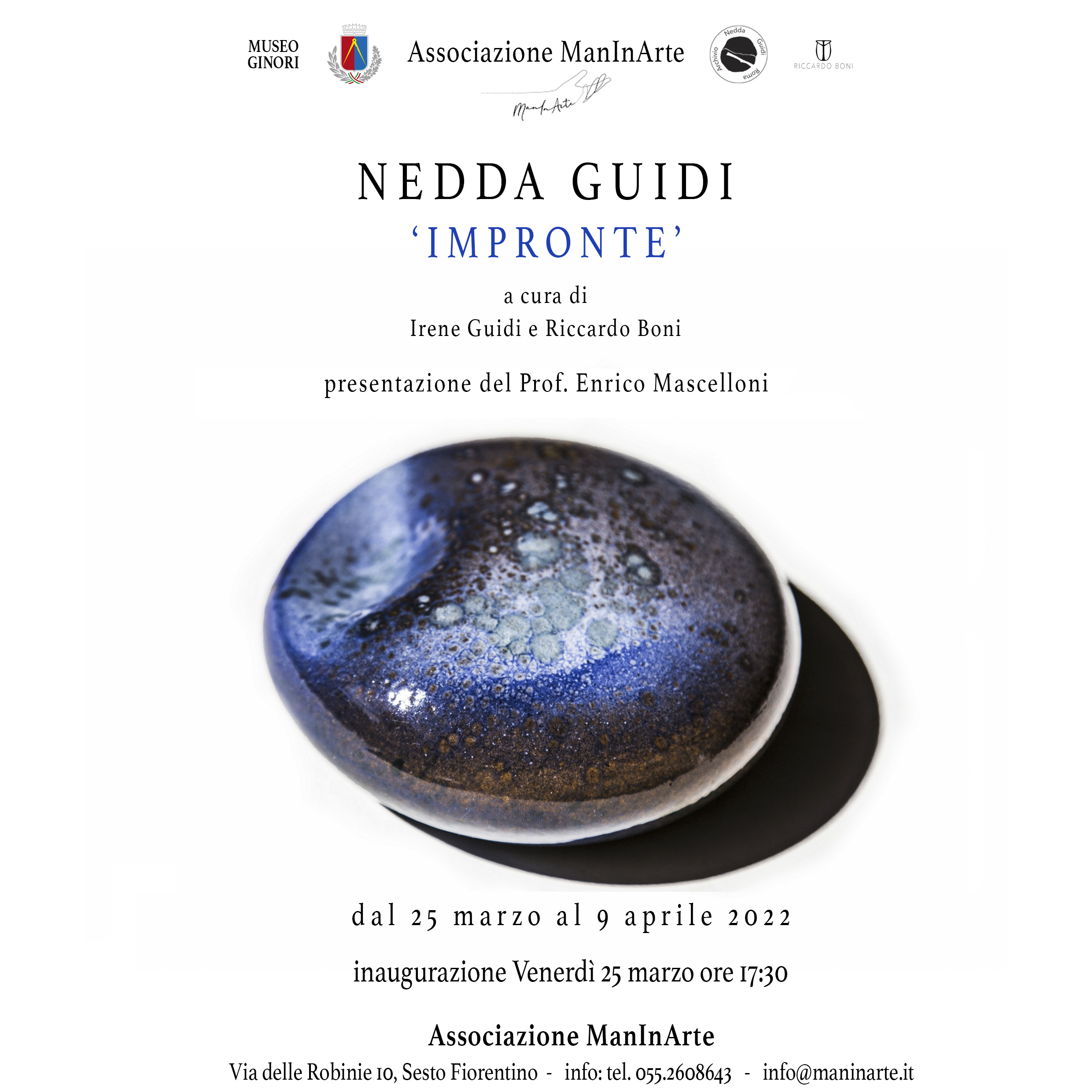 Torna a Firenze dopo quasi 60 anni dalla sua prima mostra una delle più importanti ed originali artiste del '900 Italiano. Inaugurerà venerdi 25 marzo presso l’Associazione culturale ManInArte di Sesto Fiorentino la mostra ‘Nedda Guidi – Impronte’ a cura di Irene Guidi e Riccardo Boni, con una presentazione di Enrico Mascelloni e l'adesione della Fondazione Museo Archivio Richard Ginori della Manifattura di Doccia.