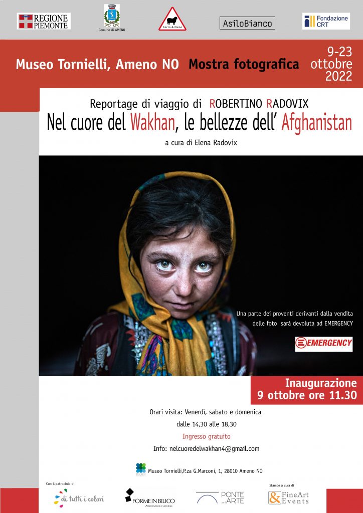 La mostra fotografica itinerante del fotografo Robertino Radovix , "Nel cuore del Wakhan, le bellezze dell'Afghanistan" a cura di Elena Radovix, è ospitata nell'ambito del Festival del cinema rurale di Corto e Fieno 2022. Allestita negli spazi espositivi del Museo Tornielli di Ameno (NO), dal 9 al 23 ottobre 2022, comprende una serie di cinquanta fotografie scattate nel 2019 durante un viaggio nel corridoio del Wakhan.