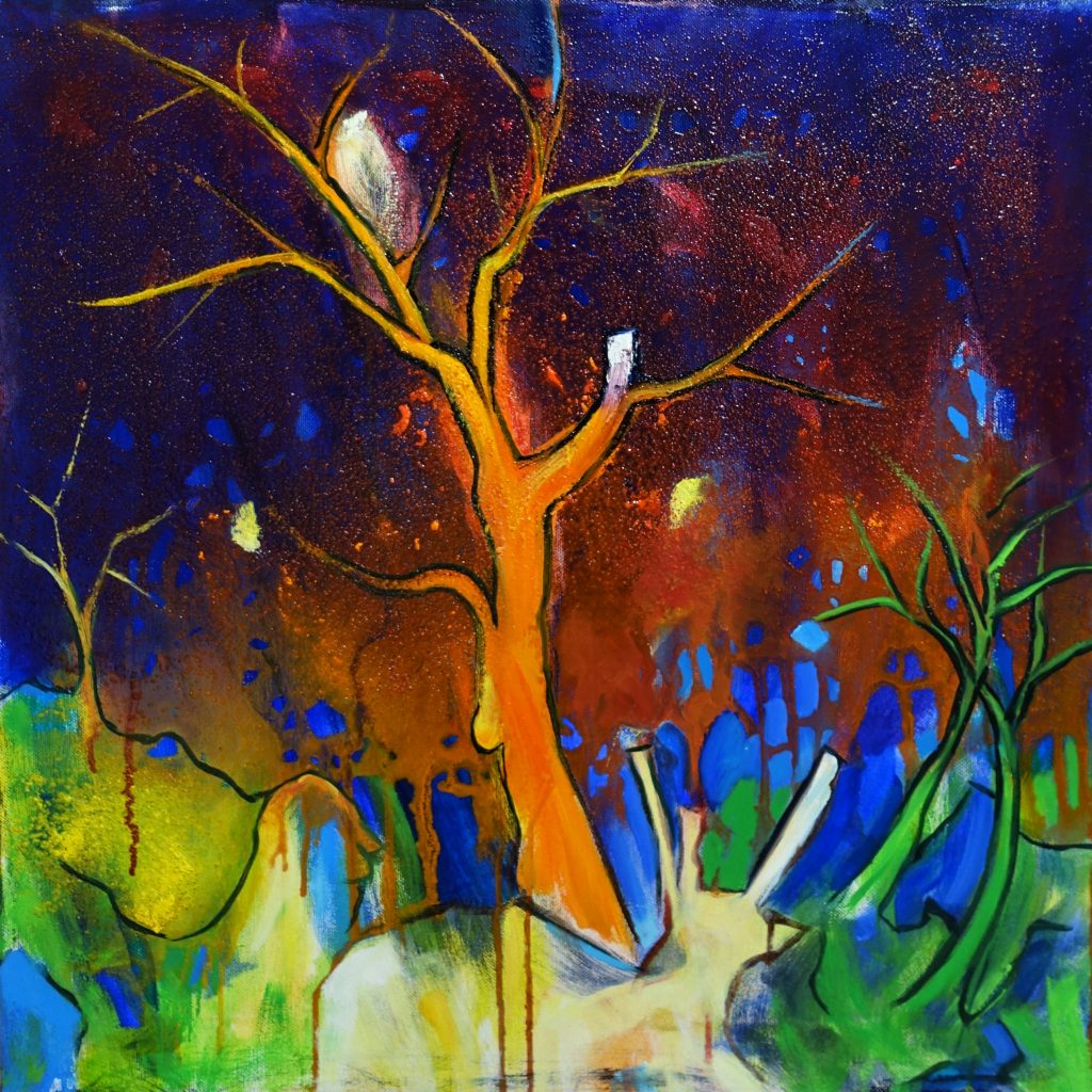 Michael Peddio ha realizzato le opere in mostra durante la pandemia, che tutti riconosciamo avere tanto profondamente segnato le nostre vite. Prendendo spunto da alcuni dei quadri ultimi, potremmo attribuire a questo suo ciclo il titolo di “i fuochi”, giacché sono caratterizzati da fuochi e roghi che ardono, che ormai assediano le piante e i boschi che Peddio aveva raffigurato in precedenza, testimonianza del suo rapporto profondo con la natura.