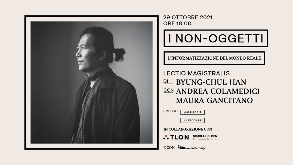 Venerdì 29 ottobre 2021, alle ore 18.00, la Galleria Nazionale d’Arte Moderna e Contemporanea sarà teatro di un’imperdibile e inedita lectio magistralis del filosofo sudcoreano Byung-Chul Han dal titolo I non-oggetti: l’informatizzazione del mondo reale.