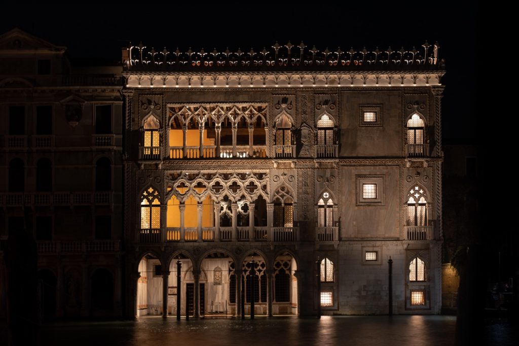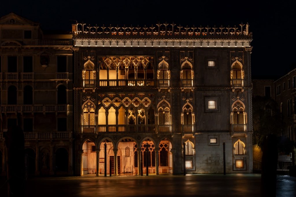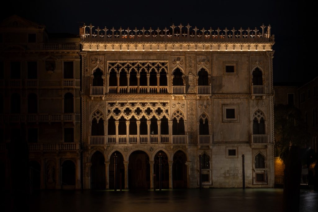 La Ca’ d’Oro, con il suo celebre prospetto sul Canal Grande e il raffinato apparato ornamentale che ne contraddistingue l’architettura, è stata descritta come un “poema del marmo”. Fu costruita all’inizio del XV secolo su commissione della ricca famiglia Contarini. Gioiello dell’architettura tardogotica, è uno dei palazzi più ammirati di Venezia, noto per l’iconica facciata e le sue spettacolari decorazioni. Con l’intento di rievocare e di mettere in risalto la preziosa lavorazione e le antiche dorature, la Direzione regionale Musei Veneto e Venetian Heritage hanno guidato il progetto per l’installazione di un sistema di illuminazione notturna sostenibile e a basso impatto ambientale.