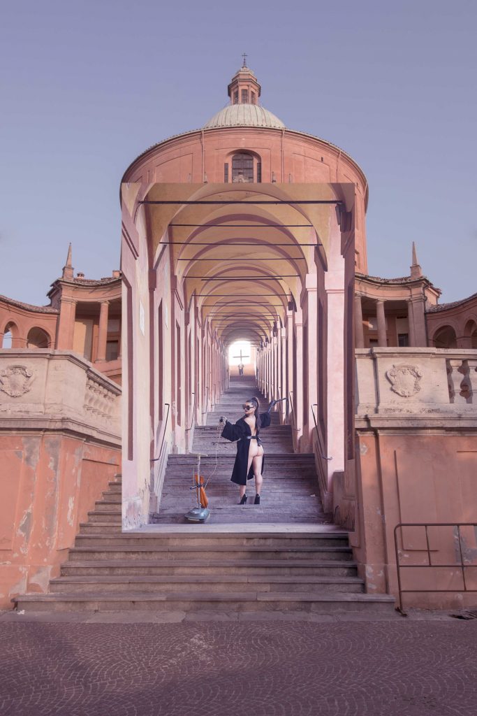 Dopo la morte della nonna, Gioia prosegue con forza il lavoro trasformandolo in un solenne omaggio all’amata matriarca. Veste i panni che un tempo erano stati della nonna diventando soggetto di scatti sospesi tra il macabro, il grottesco e la fotografia di moda. In questi travestimenti l’oggetto cambia funzione e il gioco si fa esplicito. Gioia Maini (Bologna, 1982) nasce in un ambiente ricco di stimoli artistici; disegna, cuce e fotografa fin da piccola. Si iscrive all’Istituto d’Arte di Bologna e prosegue la formazione in Design industriale a Firenze. Nel 2005 si trasferisce a Barcellona, dove vive per nove anni. Frequenta il master in Design dei Costumi per il teatro e le arti visive e lavora come costumista in produzioni cinematografiche e teatrali. Nel 2012 lancia una linea di scarpe che porta il suo nome e che promuove tra Barcellona, Londra e Parigi. Rientra in Italia per prendersi cura dell’anziana nonna. Da questa strana convivenza nasce Vodka & Tena Lady.