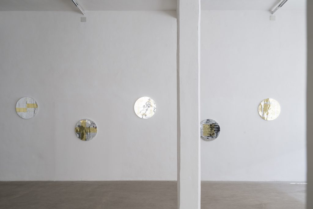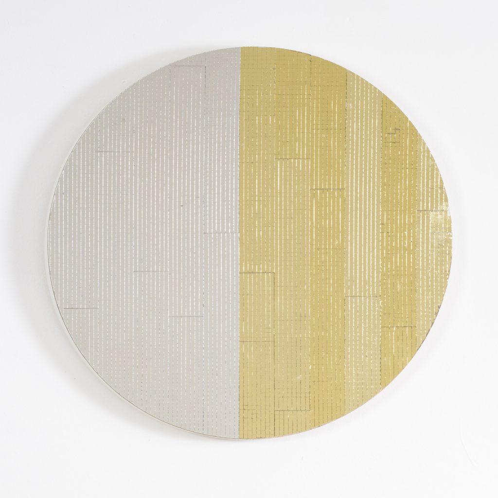 We are delighted to present “OCULUS” by John Armleder, a distinctive project for Noire Gallery that stems from a longstanding friendship with an extraordinary and visionary artist. Comprised of fifteen meticulously crafted mirrored mosaics in gold and silver, this artwork reflects fragments of a distorted and indistinct reality, assuming a multitude of shapes that continually repeat and undergo metamorphosis, continuously evolving and adapting in response to the prevailing circumstances.