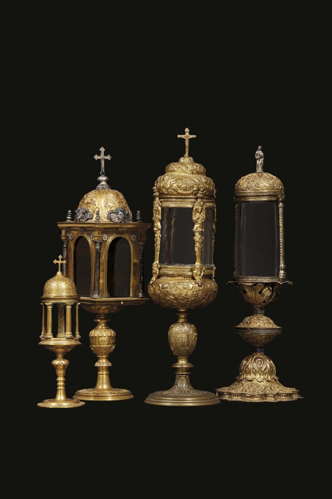 Eccezionali e rari esemplari di scultura lignea, importanti marmi e bronzi dal Cinquecento all’Ottocento, antichi manufatti dedicati al culto come un gruppo di reliquari dorati cinque e seicenteschi, altri per la ricerca scientifica, strumenti di misurazioni, raffinati cannocchiali...