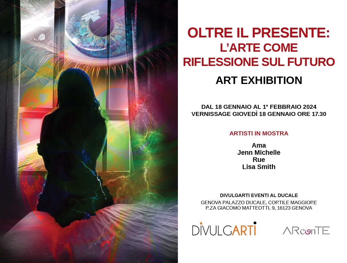 La Mostra d'Arte Contemporanea Internazionale "Oltre il Presente: l’Arte come Riflessione sul Futuro" aprirà le sue porte dal 18 gennaio al 1 febbraio presso lo Spazio espositivo Divulgarti Eventi nel suggestivo Palazzo Ducale di Genova, con inaugurazione giovedì 18 gennaio alle ore 17:30.