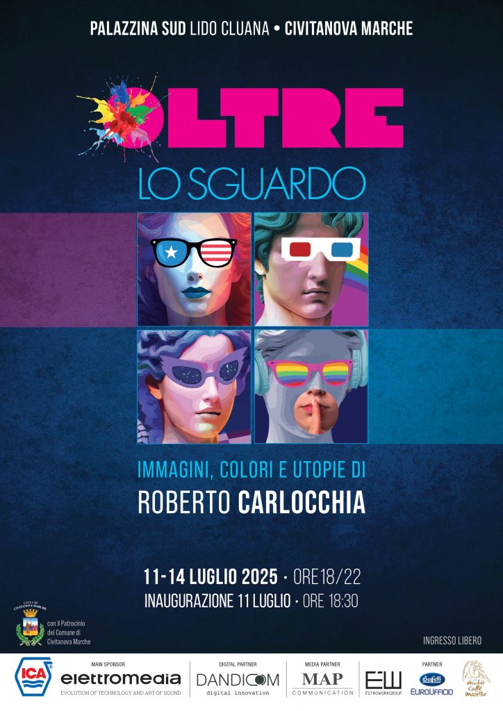 Sarà inaugurata venerdì 11 luglio (ore 18.30) a Civitanova Marche (MC) la nuova mostra personale di Roberto Carlocchia, artista e grafico conosciuto per le sue particolari creazioni in “digital art” e le sue originali opere, che attraverso l’utilizzo di tecniche e colori toccano in modo surreale e con fantasia le attualità e il vissuto del nostro tempo.