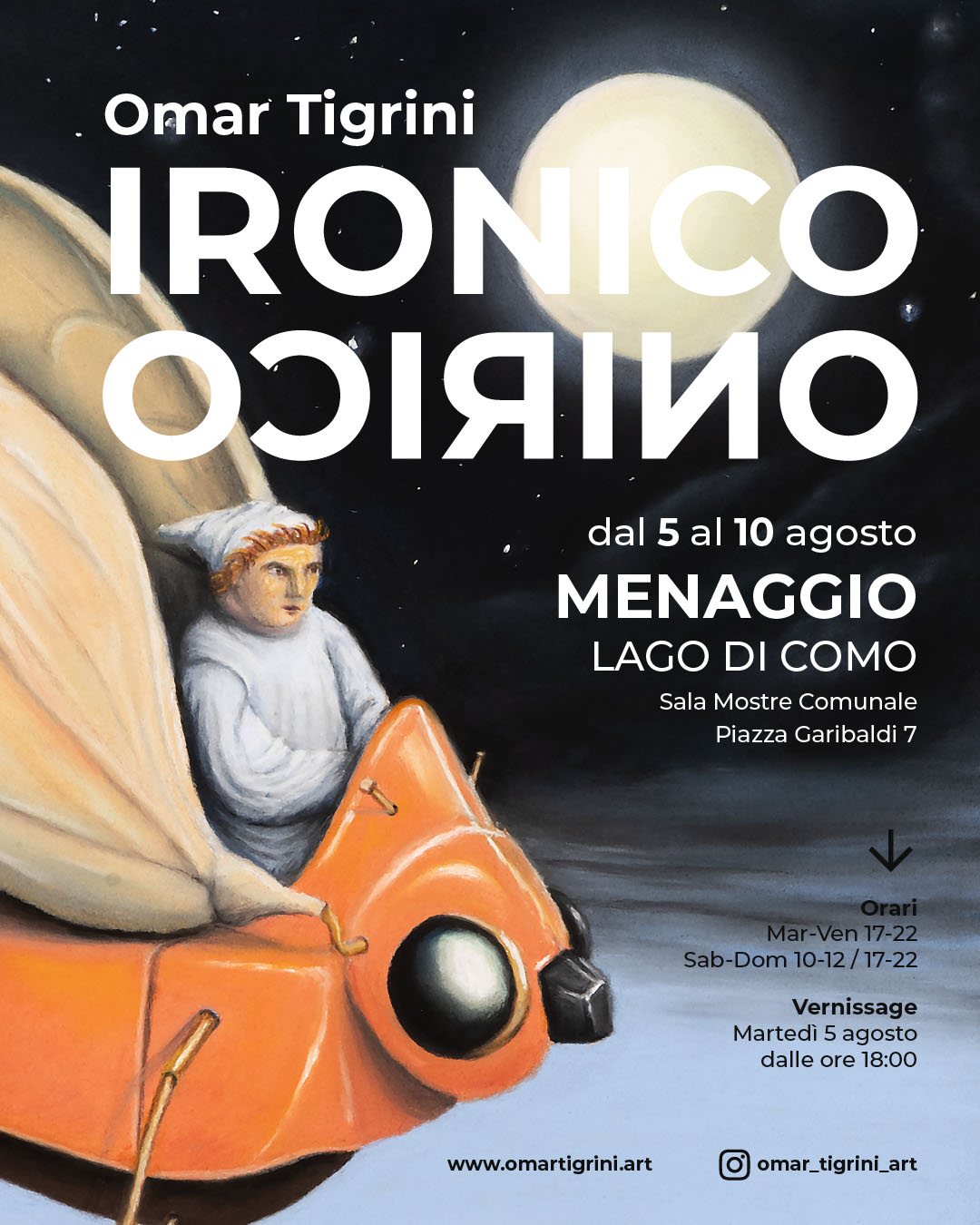 Menaggio-Lago di Como – Inaugura mercoledì 5 agosto 2025 alle ore 18 l'esposizione "Ironico-Onirico", la prima mostra personale di Omar Tigrini. Sarà presente l'artista per presentare il suo lavoro e incontrare il pubblico.