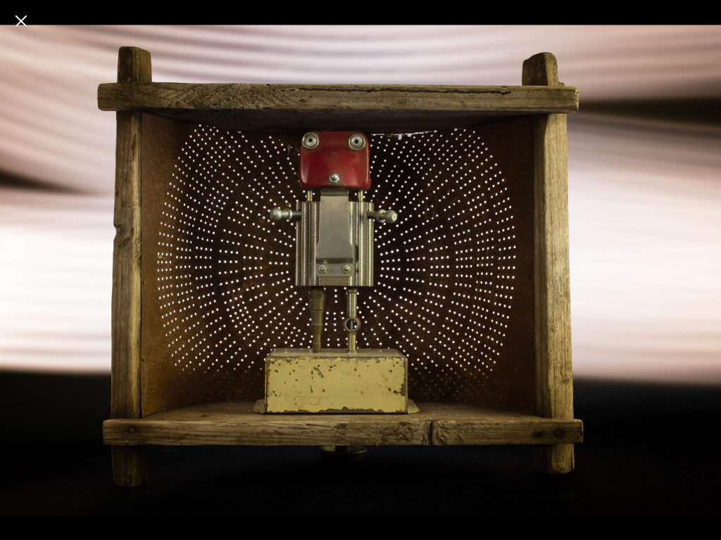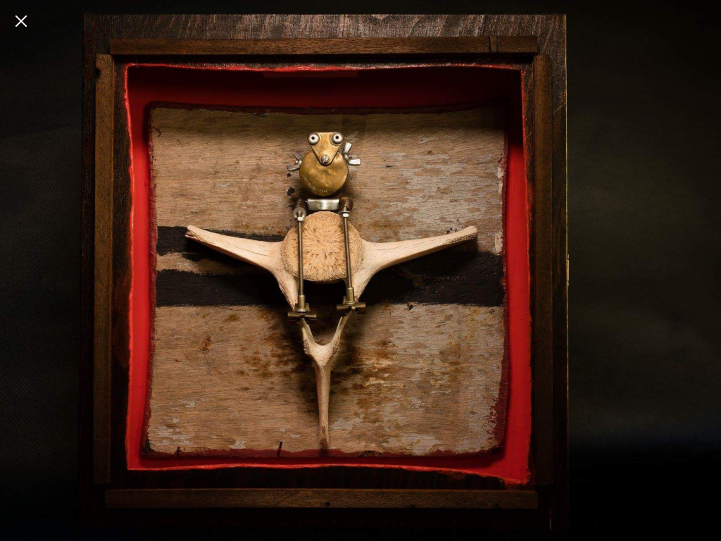 Nelle mani dell'artista gli oggetti più disparati, bulloni, orologi rotti, vecchie radio, leve, manovelle, lamiere, ganci prendono vita in modo sorprendente. Ma in fondo una vita l'hanno avuta o forse l'hanno ancora, ed è come se dal vecchio cassone chiamassero con invocazioni che solo una mente creativa può cogliere.