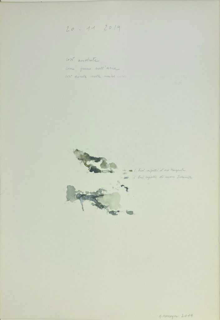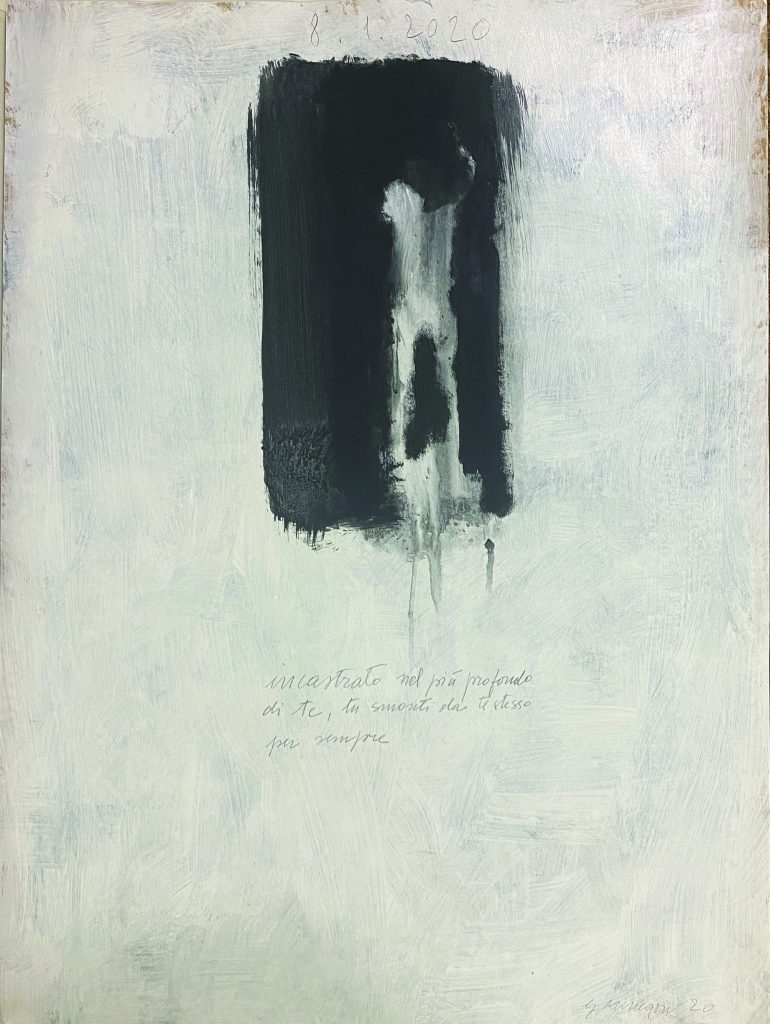 In questa occasione il pittore presenta una serie di acquerelli su carta in cui si può riscontrare una dimensione molto intima impreziosita dalla delicatezza delle pennellate, dalla leggerezza della tecnica, ma anche dal ritorno, o meglio, dal recupero dell’uso del colore che perde la sua matericità pur mantenendo una forte connotazione simbolica.
