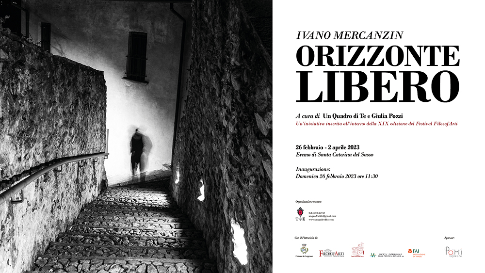 L’Eremo di Santa Caterina del Sasso ospita Orizzonte libero, una nuova mostra fotografica di Ivano Mercanzin, dal 26 febbraio al 2 aprile 2023, curata da Un Quadro di Te A.p.s. e Giulia Pozzi. L’esposizione è inserita all’interno della programmazione del festival Filosofarti.