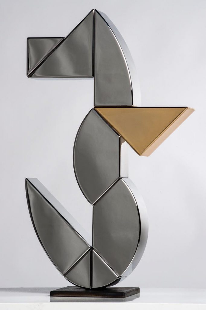 Oltre una ventina le opere esposte, scelte tra le più rappresentative dell’intero excursus creativo della Ancilotto: dalle mobili interpretazioni di illustri opere d’arte greco-romana ai lavori modulari del corpus Ab Ovo ispirato all’antico gioco del Tangram.