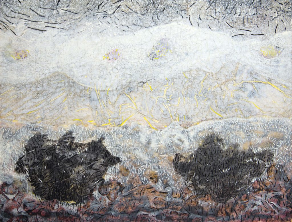 Matericità, colore, dinamismo sono la cifra stilistica delle opere di Raffaele Boemio , forma e materia danno vita ad una danza vorticosa, nella quale si inscrive la molteplicità del divenire cosmico, l’uomo disilluso toglie il velo e svela la contraddizione della fragilità che da un lato fa ardere la fiamma della curiosità dall’altro è sopraffatta dalla corruzione degli atteggiamenti e dal disincanto.