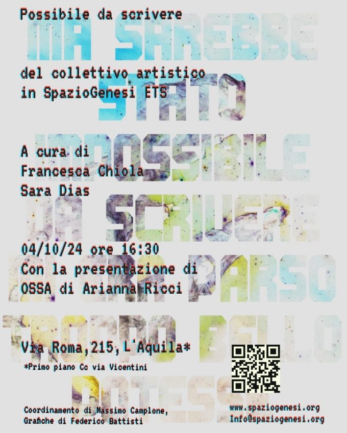 Evento di avvio dell'attività dell'associazione costituita prevalentemente dagli studenti/esse dell'Accademia di Belle Arti in L'Aquila per la gestione di eventi…