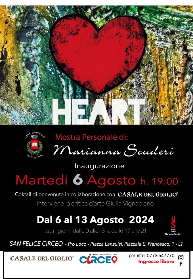 Il 6 Agosto si inaugura la sua mostra personale "Heart”, Emozioni e Simbolismo nell'Arte, nella Pro Loco di San Felice…