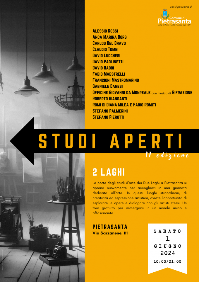 Buongiorno, scrivo per segnalarvi questo evento patrocinato dal Comune di Pietrasanta. Vi auguro il meglio! Antonio Mastromarino STUDI APERTI 2…
