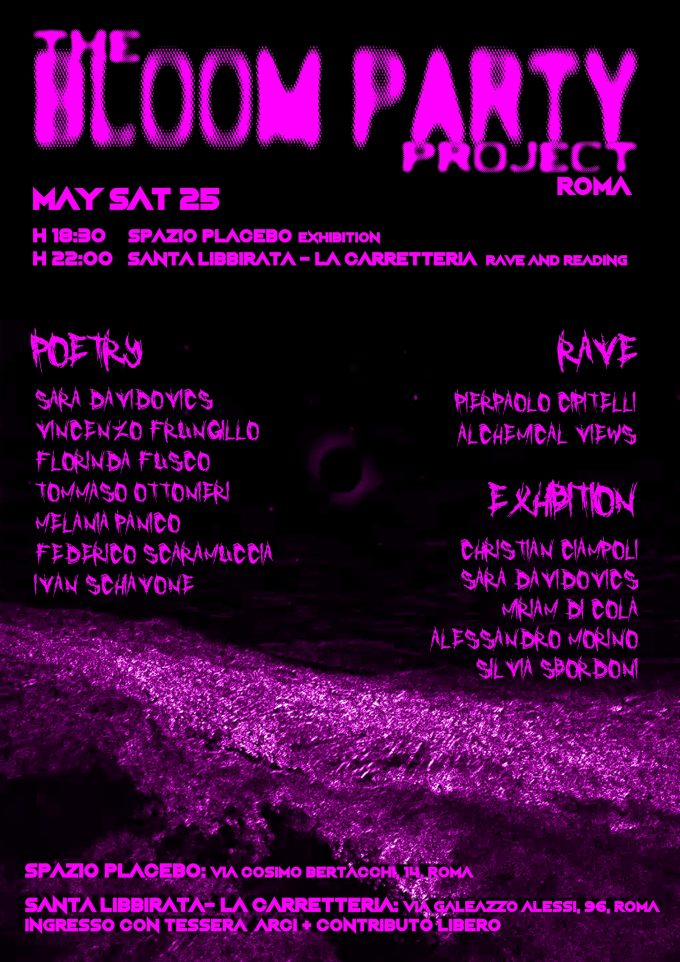 The bloom party project nasce dalla collaborazione tra artisti, musicisti, poeti e due spazi culturali della capitale, Spazio Placebo e…