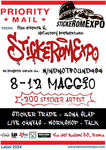 UP URBAN PROSPECTIVE FACTORY È LIETA DI PRESENTARE STICKEROMEXPO A CURA DI MINDNOTFOUND404 DAL 8 AL 12 MAGGIO Opening Mercoledì…