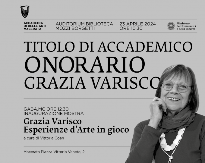 Grazia Varisco è l'Accademico Onorario 2024 dell'Accademia di Belle Arti di Macerata. La cerimonia cum Laudatio si svolgerà il 23…
