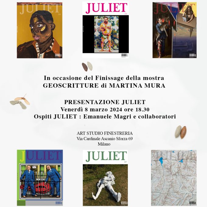MARTINA MURA - Geoscritture – Pratiche di coesistenza Finissage 08/03/2024 ore 18.30 PRESENTAZIONE JULIET con Emanuele Magri e collaboratori a…