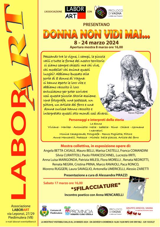 Mostra Collettiva con 19 Artisti, e spettacolo con la Proloco di Vagna (VB) l'Associazione LaborART e la PROLOCO di Vagna…