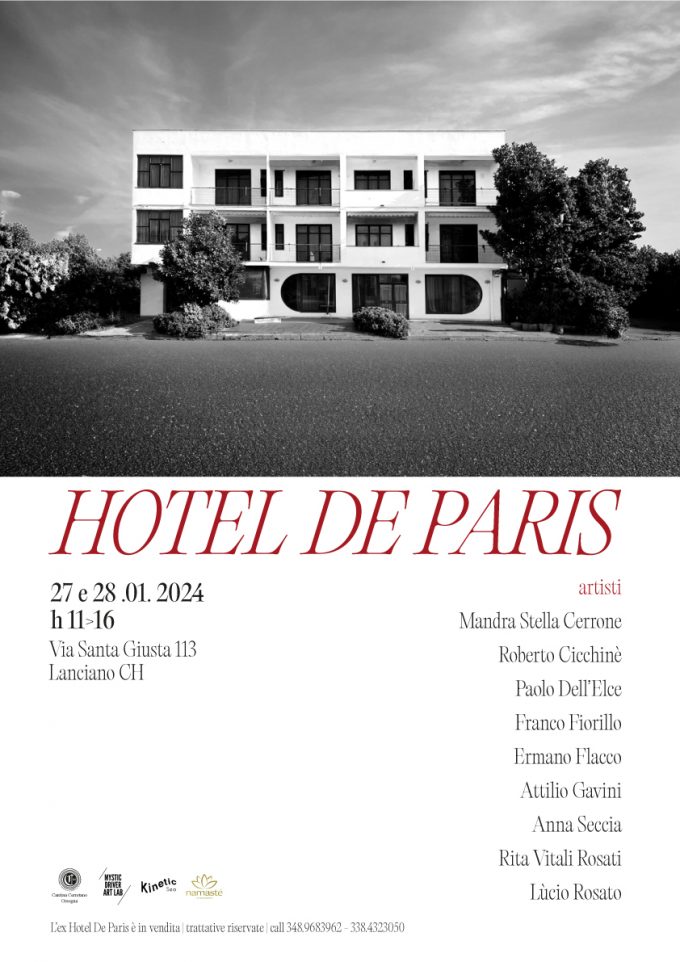 Hotel De Paris 27-28 gennaio 2024 h 11>16 Artisti Mandra Cerrone Roberto Cicchinè Paolo Dell’Elce Franco Fiorillo Ermano Flacco Attilio…