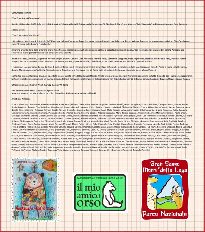 Comunicato Stampa "The True Story Of Amarena" Sabato 16 Dicembre 2023 dalle ore 15.00 si terrà a Colledoro (Castelli Te)…