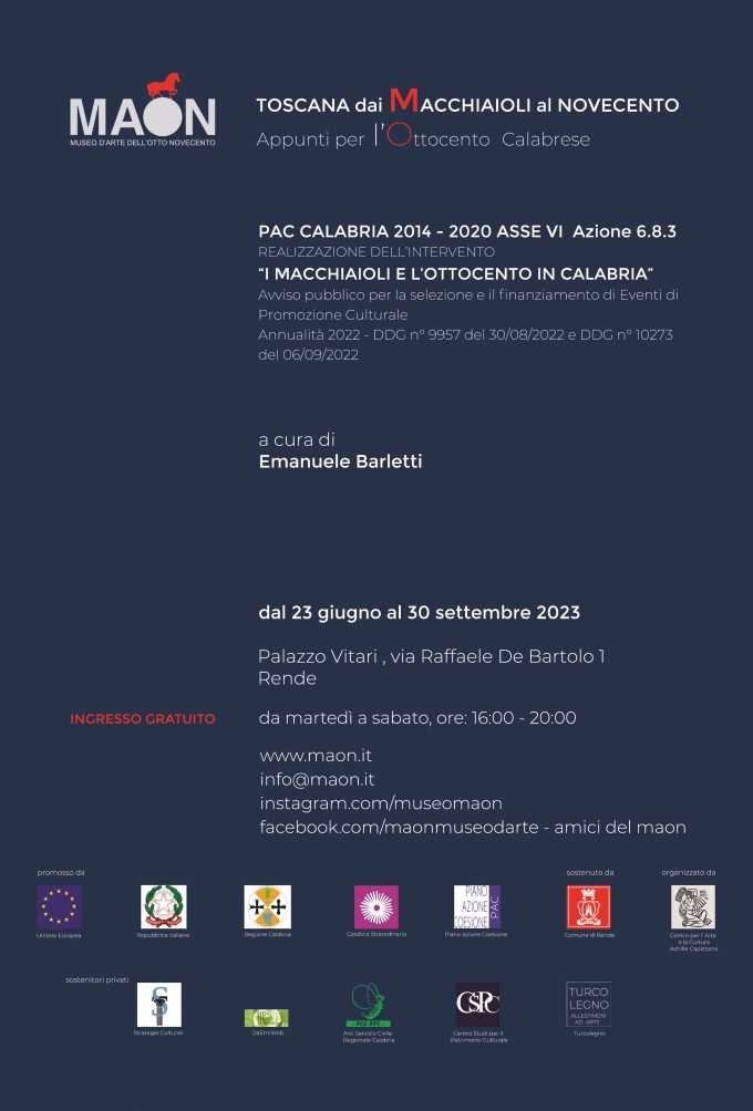MAON Museo d’Arte dell’Otto e Novecento. (Palazzo Vitari) via de Bartolo 1 Rende L’iniziativa segna la ripresa e il rilancio…