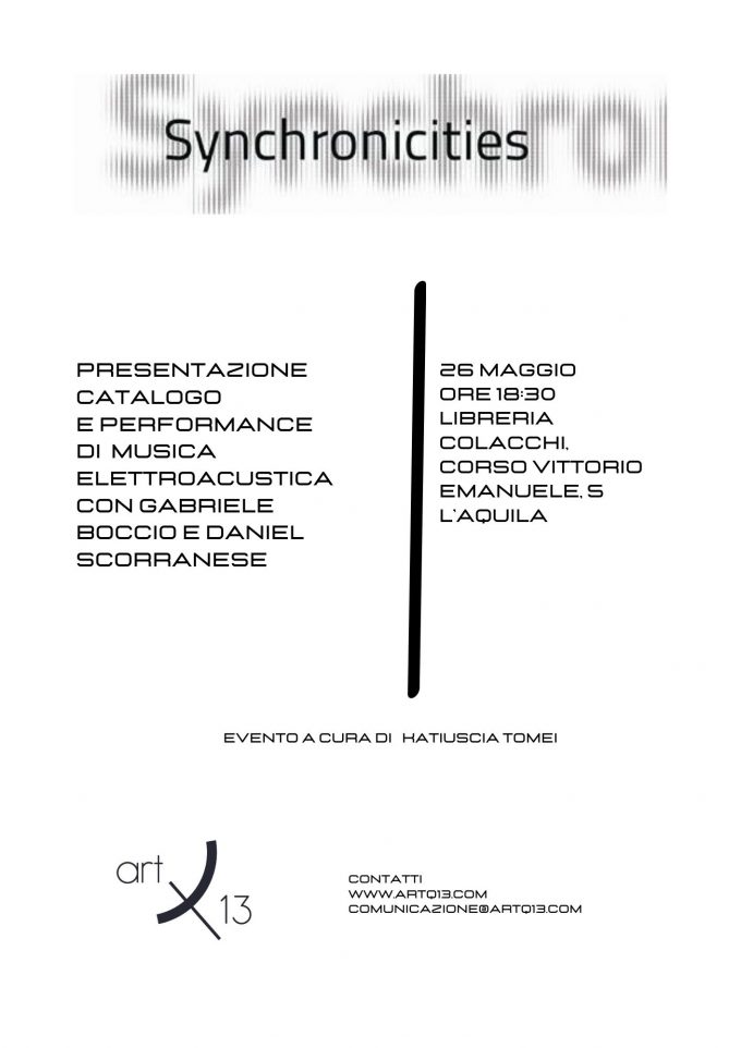 L'Aquila: presentazione progetto editoriale Synchronicities e performance di musica elettroacustica alla libreria Colacchi con artQ13. artQ13 sympatric areas for artistic…