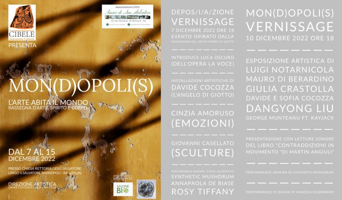 MON(D)OPOLI(S) l'ARTE ABITA IL MONDO (rassegna d'arte, spirito e corpo) Monopoli - prenderà il via mercoledì 7 dicembre 2022 dalle…