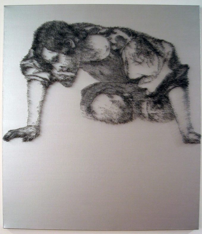 Uno scuro dorso di toro, sorretto da un’asta di legno, collegato ad un motore elettrico: seppur palese nei materiali, l’opera…