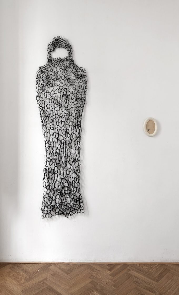 Gilda Contemporary Art espone in vetrina l'opera NUDA di Francesca Romana Pinzari che rappresenta un niqab fatto interamente di ciocche…
