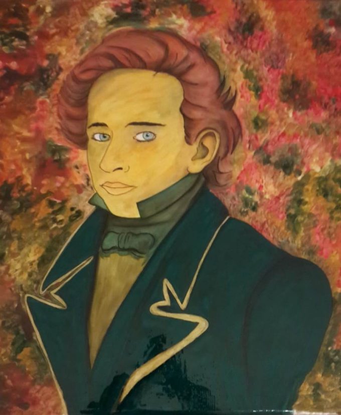 Un intero locale interamente dipinto a mano: dai tavoli alle sedie alle istallazioni fino ai quadri sulle pareti Recanati, patria…