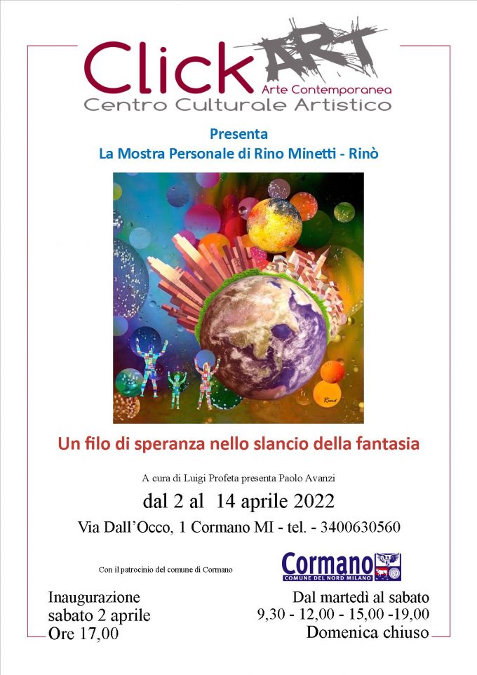 Mostra personale dell'artista Rino Minetti , che dopo cinquant'anni di attività, continua a stupire e ad anticipare il futuro…