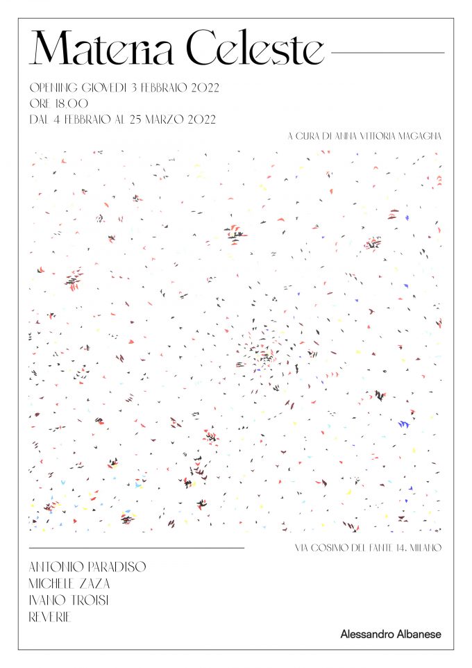 Galleria Alessandro Albanese Inaugurazione Giovedì 3 Febbraio 2022, ore 18:00 Dal 4 Febbraio al 25 Marzo 2022 Indirizzo: Via Cosimo…