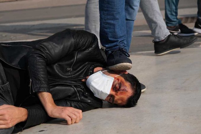 L’artista si presenterà al pubblico con il viso tumefatto; per terra sulla soglia d’ingresso del Piccolo Teatro Streheler, come uno…