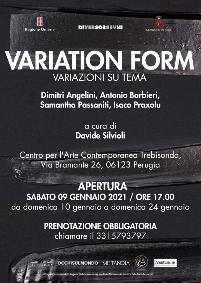 Progetto: DIVERSOINVERSO. Evento: Mostra collettiva d’ arte contemporanea Titolo: VARIATION FORM – Variazioni su tema Artisti: Dimitri Angelini, Antonio Barbieri,…