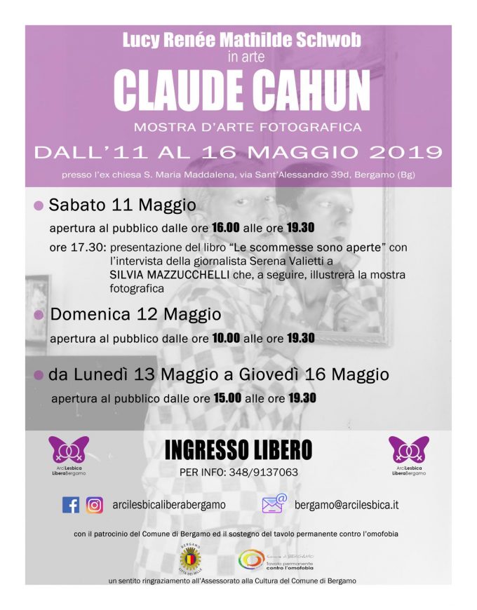 Arcilesbica Libera Bergamo è lieta di presentare la mostra retrospettiva del lavoro della fotografa Claude Cahun, con patrocinio del Comune…