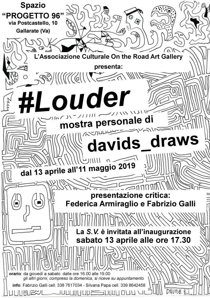#LOUDER mostra personale di DAVIDS_DRAWS Presentazione critica di Federica Armiraglio e Fabrizio Galli La mostra “#LOUDER” costituisce la prima personale…